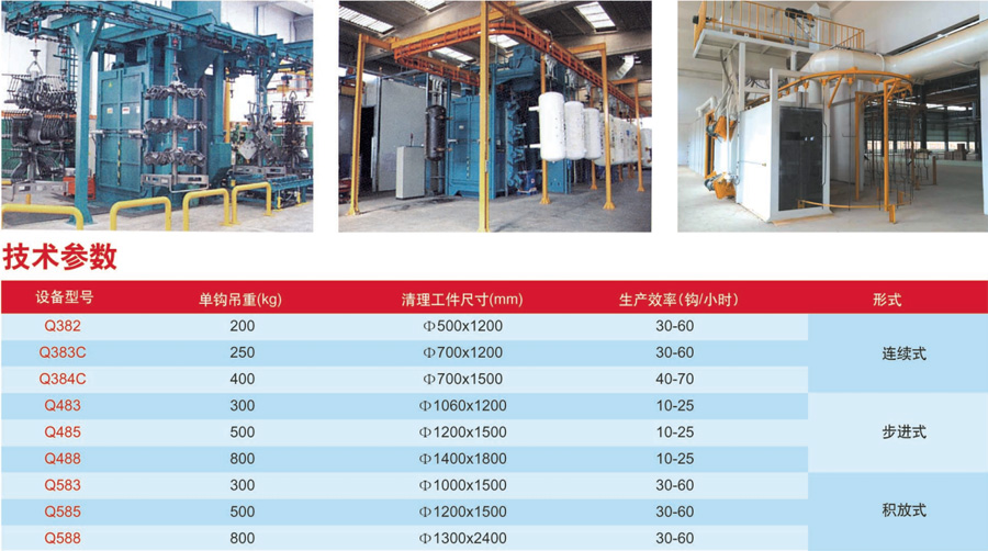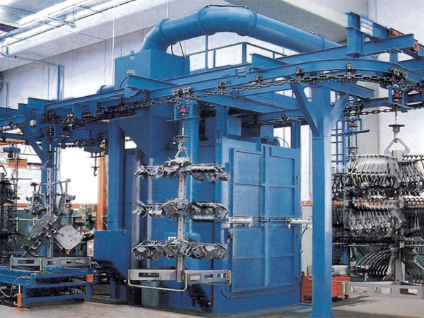 Q38/48/Q58系列懸鏈通過(guò)式拋丸機(jī)隨吊鏈移動(dòng)方式,可分為連續(xù)式、步進(jìn)式、積放式。本機(jī)適合多品種、大批量鑄鐵件、鑄鋼件、鍛件及鋼結(jié)構(gòu)件的表面清理及拋丸強(qiáng)化,如發(fā)動(dòng)機(jī)缸體蓋、電機(jī)殼體、輪轂、鋼瓶等清理效果尤佳。是汽車(chē)、拖拉機(jī)、柴油機(jī)、電機(jī)、閥門(mén)等行業(yè)的理想選擇。