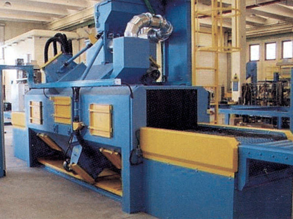 通過拋丸去除工件表面的銹層、焊渣及污物,使之獲得均勻一致的金屬光澤,提高了涂飾質量與防腐效果。被清理件以自動、連續不間斷方式通過拋丸區,接受多個方向的拋丸清理,清理效果好,且有效避免工件相互碰撞而損傷。