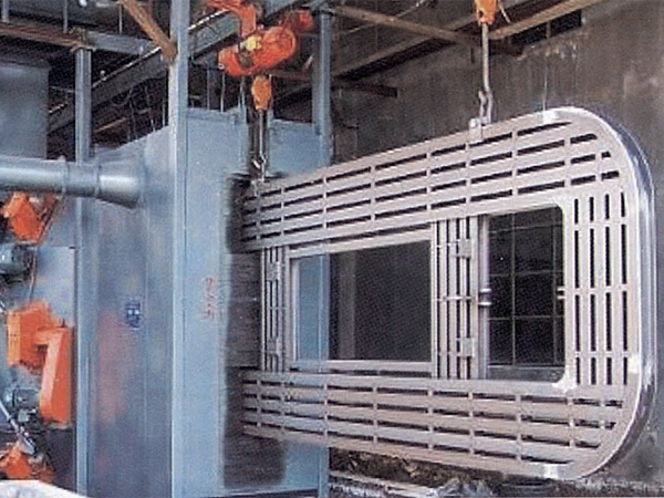 吊鉤通過式拋丸機可用于對機械制造.壓力容器.汽車.船舶.建筑.電機.機床等行業的大中型鑄鍛件.鋼結構件進行表面清理或強化,用于提高產品零部件的外觀質量和表面工藝狀態。對于可以吊掛的大型工件,可以采用雙電動葫蘆抬起工件通過拋丸區.對工件進行拋丸清理,多臺拋丸器經電腦模擬布置.可以對工件的各個表面徹底的進行清理。以達到清除鋼結構銹蝕、舊漆皮及其它污物的目的。專用技術的室體防護和密封結構,使本機具有結構先進、生產效率高.清理質量好及自動化程度高的特點。