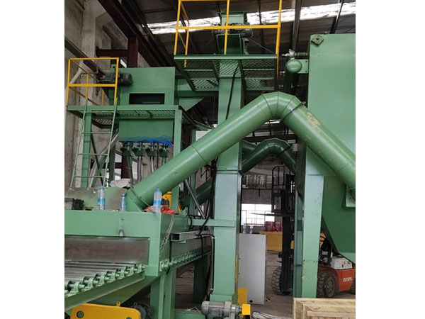 主要部件由清理室、輥道輸送機、拋丸器、彈丸循環系統(含提升機、分離器、縱向螺旋輸送器和供丸管道)、除塵、清掃系統、電氣控制等部件組成。